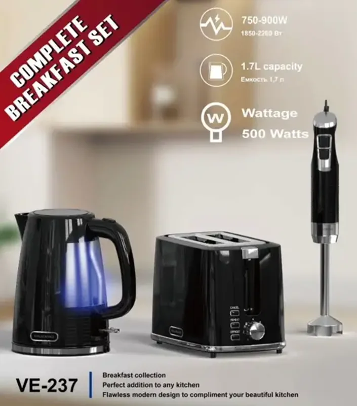 با ست سه کاره وگاتی مدل VE _237، تجربهای سریع و آسان در آشپزخانهتان داشته باشید. گوشت کوب قدرتمند، توستر نان با تنظیمات متنوع و کتری برقی با جوش سریع، همه نیازهای شما را برآورده میکنند. طراحی شیک و کارآمد این مجموعه، هر آشپزخانهای را به سطح جدیدی از راحتی و کارایی میبرد. همین حالا تهیه کنید و از لذت آشپزی حرفهای بهرهمند شوید! . توضیحات تکمیلی پایین صفحه . ارادتمند