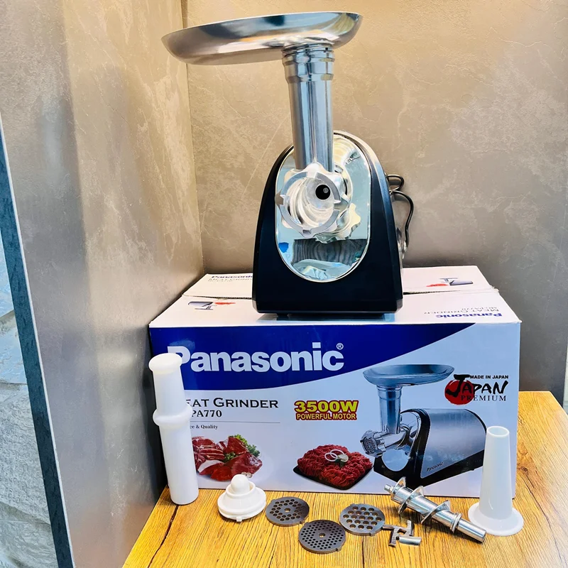 چرخ گوشت پاناسونیک PA770 با موتور مسی پرقدرت 3500 وات، انتخابی بینظیر برای آشپزخانه شماست! با عملکرد خارقالعاده و قدرت بالا، گوشتها را به سرعت و به راحتی چرخ کنید. این محصول با دوام و کارایی فوقالعاده، تجربهای حرفهای از آشپزی را برای شما به ارمغان میآورد. همین حالا تهیه کنید و لذت ببرید! توضیحات کامل. پایین صفحه. ارادتمند