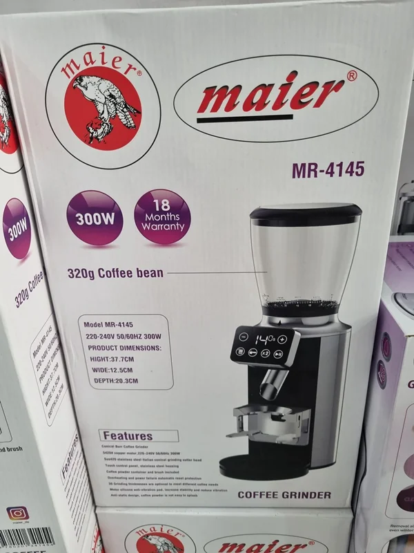 آسیاب قهوه مایر مدل ۴۱۴۵، انتخابی بینظیر برای عاشقان قهوه! با تیغههای قدرتمند استیل و تنظیمات دقیق آسیاب، اسیاب مخروطی ایتالیاییفولاد ضد زنگصحفه کنترل لمسیدارای ظرف قهوه و برسحفاظت از تنظیم مجدد خودکار در گرمای بیش از حدپد ضدلرزش سیلکونی موتوروافزایش پایداری و کاهش لرزشطراحی ضد الکتریسته ساکنجلوگیری از پاشیدن پودر قهوه