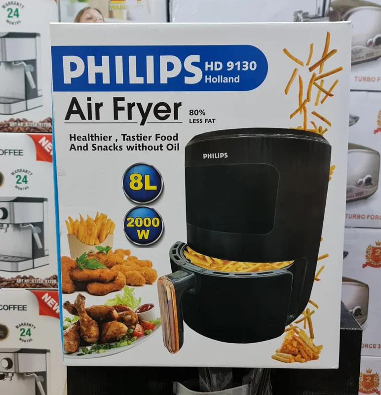 سرخ کن پر فروش فیلیپس، مدل 9130 ، 8 لیتر قابلیت جایگیری یک مرغ کامل، با 80درصد چربی کمتر . مشخصات : 2000وات واقعی ، تایمر قابل تنظیم ، مجهز به تکنولوژی Rapid Air برای گردش سریع هوا و کاهش بو درهنگام سرخ کردن ،مجهز به سیستم حالت گرم نگهدارنده تا 30دقیقه ، صفحه نمایش لمسی با 7 برنامه از پیش تنظیم شده ،اعلام هشدار در پایان برنامه ، توضیحات بیشتر پایین صفحه ، ارادتمند