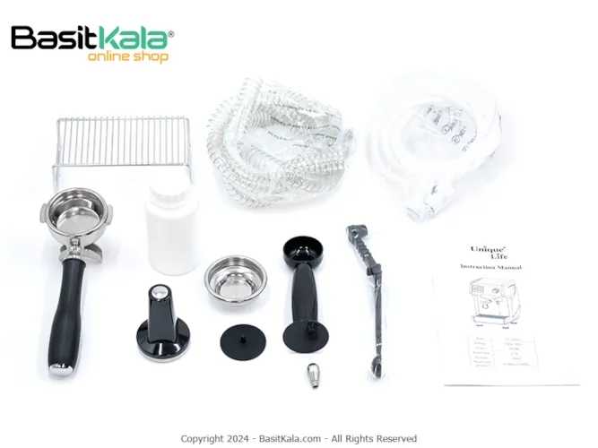 اقلام همراه: تمپر، پیمانه قهوه، برس و مایع رسوبزدا، سینی چکه گیر استیل