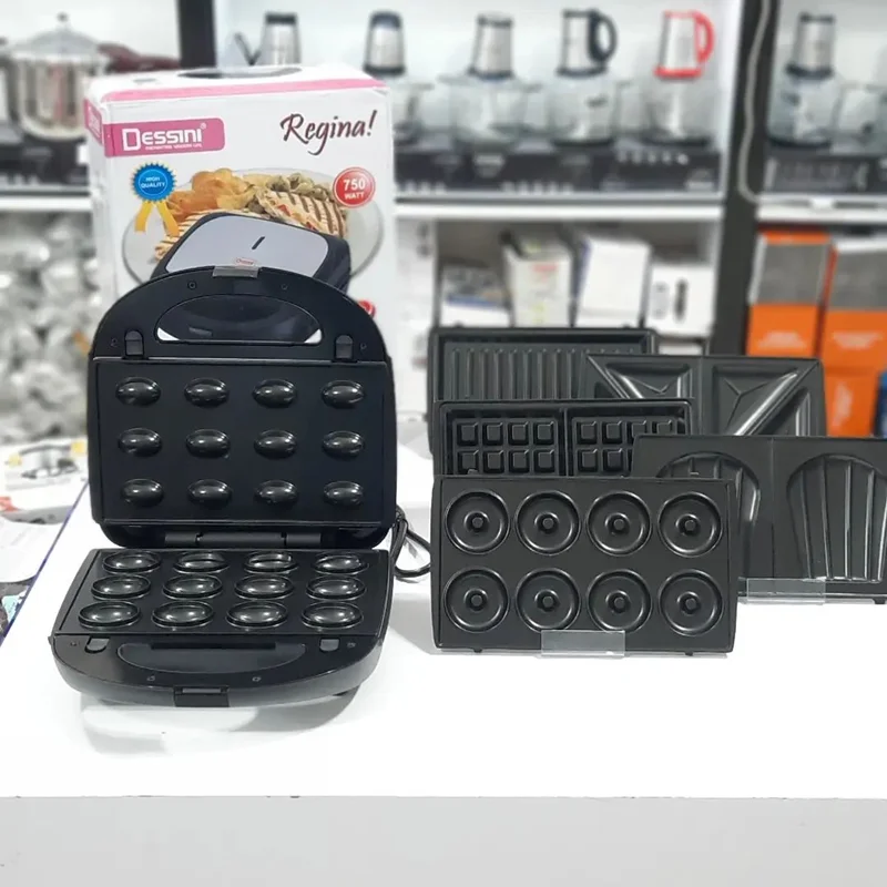750وات واقعی، صفحه استیل ، ساخت ایتالیا،کیفیت وطراحی عالی، صفحات نچسب وقابلیت جداشدن، دستگیره عایق حرارت،چراغ نمایشگر LED ، قابلیت پخت:اسنک ساز - ساندویچ ساز - وافل ساز - گریل - بیسکویت - دونات. سیستم قطع کن، خودکار،(هزینه ارسال با مشتری) توضیحات بیشتر پایین صفحه، ارادتمند