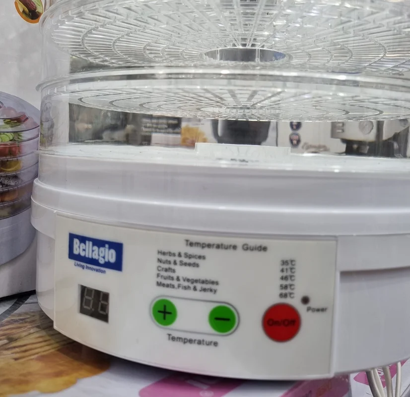 ساخت کشور ایتالیا،چرخش 360 درجه هوا داخل محفظه میوه خشک کن ، 5 طبقه از جنس پلاستیک فشرده و بادوام ،مجهز به تایمر 30 دقیقه تا 24 ساعت ،قابلیت تنظیم دما بین 35 تا 75 درجه سانتیگراد،عملکردها : خشککردن انواع میوه ،سبزیجات ،گوشت ، . .قابلیت شستشوی اجزا (به جز بدنه اصلی) در ماشین ظرفشویی، پایه ضدلغزش برای خشک کردن میوه، سبزیجات و گوشت و ماهی دکمههای + و- بر روی دستگاه تعبیه شـده است که میتوانید زمان تعیین شـده را بر روی صفحه نمایشگر مشاهده کنید. دارای دریچه تخلیه هوا. ارادتمند