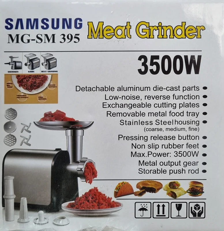 چرخ گوشت سامسونگ مدل MG-SM 395، انتخابی ایدهآل برای آشپزخانه شما! با قدرت بالا و تیغههای استیل ضد زنگ، گوشت را با سرعت و کیفیت بینظیر خرد کنید. طراحی مدرن و ایمن، استفاده آسان و تمیزکردن سریع، تجربهای جدید از آشپزی را فراهم میکند. همین حالا خرید کنید و لذت ببرید!
